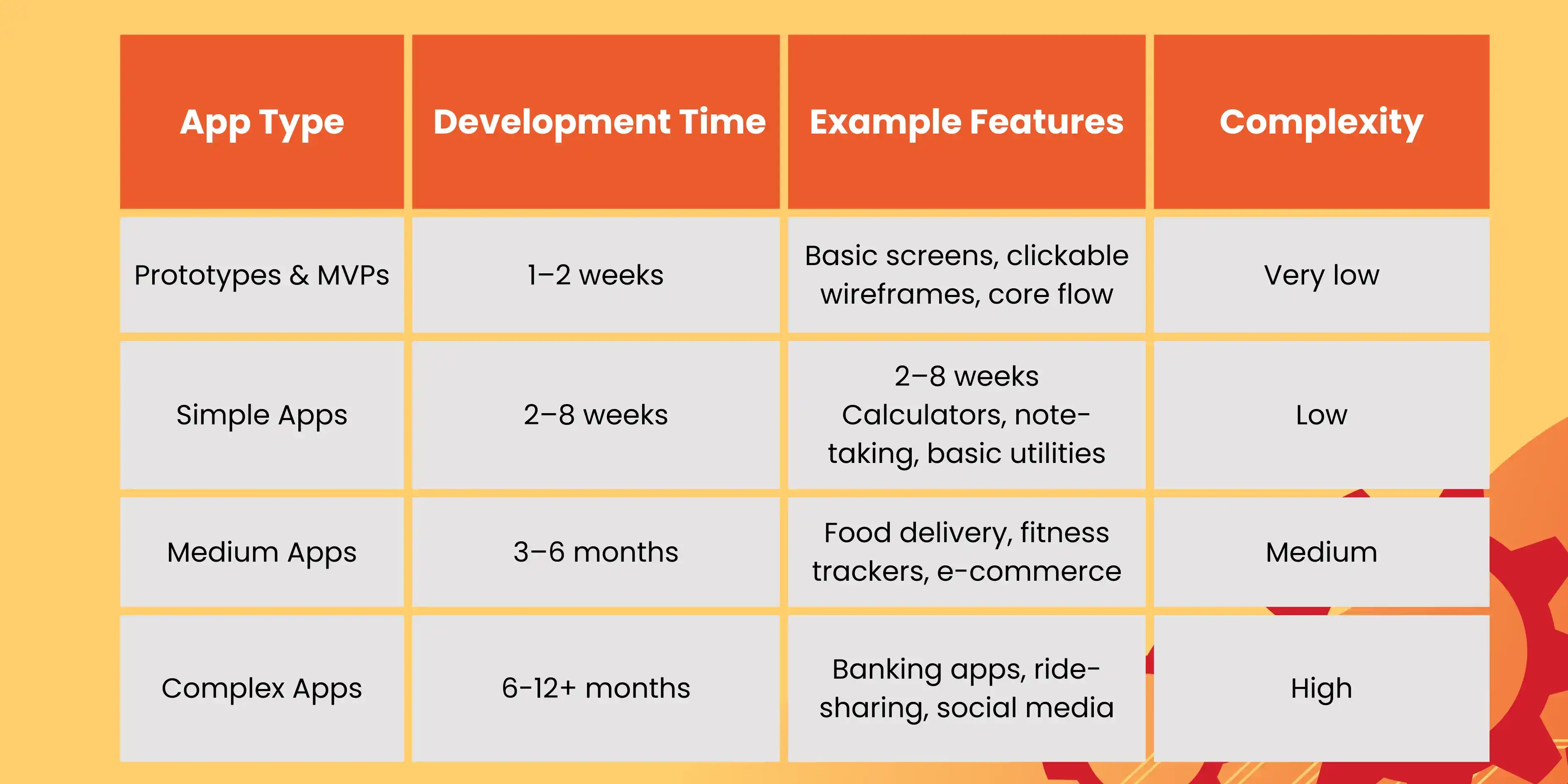 - Basic apps such as a note-taker, calculator, or habit tracker can require 2-8 weeks since only simple functions are required.