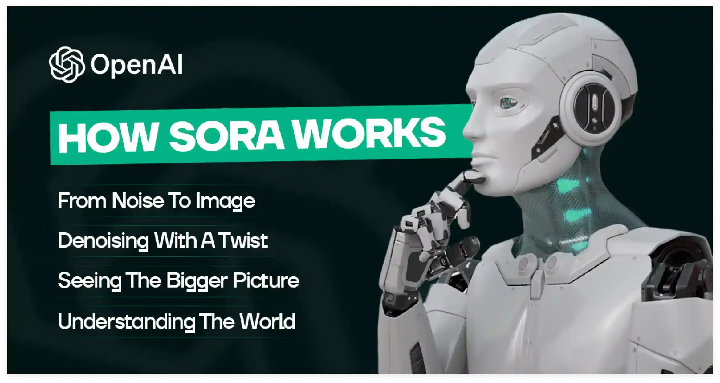 Sora is a diffusion model, a type of generative AI. It "learns" to generate content by taking training data, adding a random noise pattern, and then reversing that process. By repeating this process millions of times with varied training data, Sora gradually learns to generate content from the ground up.